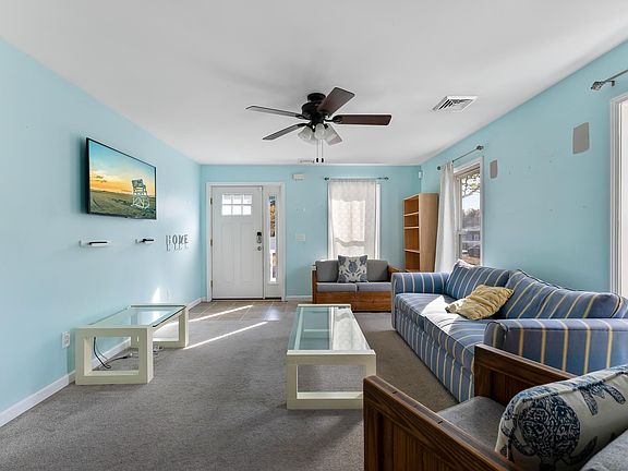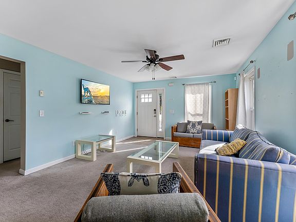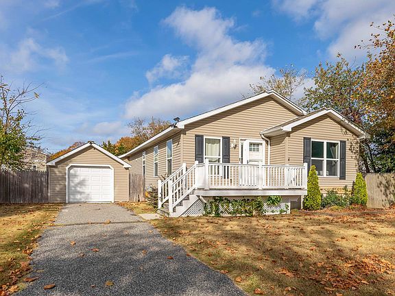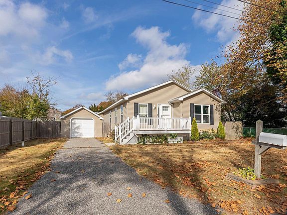 Welcome to this delightful bayside cottage, perfect for those seeking a blend of comfort, style, and convenience just a short distance from the bay! This charming home is designed for low maintenance with attractive vinyl siding and features a welcoming front porch with classic white vinyl railings, ideal for enjoying morning coffee or evening sunsets. Step inside to a bright and airy living room, bathed in natural light from oversized windows that set the tone for a cheerful ambiance. The open floor plan flows seamlessly into a dining area and well-equipped kitchen, complete with ample cabinetry, counter space, and a convenient peninsula—ideal for both cooking and entertaining. The master bedroom is a peaceful retreat, featuring a large window for added sunlight and its own private bath. Two additional guest bedrooms share a well-appointed hall bath, providing plenty of room for family or visitors. Outside, you’ll appreciate the detached garage and generous lot, perfect for extra storage or hobbies, along with off-street parking for added convenience. Enjoy year-round comfort with central air and efficient natural gas heat, complemented by ceiling fans throughout. The home also includes a solar panel system, which typically costs just $80 to $100 per month depending on energy generation, offering potential savings on utility costs with eight years into a 20-year lease. This lovely cottage is your coastal escape, just a few blocks from the bay’s scenic beauty. Come see it today and experience bayside living at its best!
