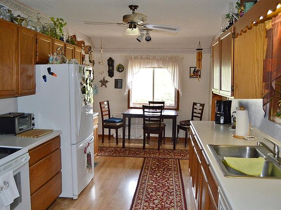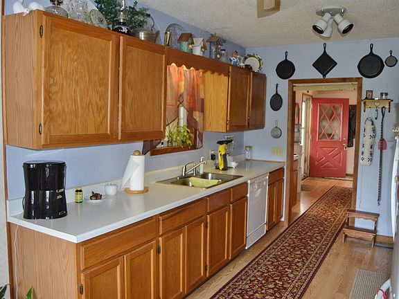 Great acreage that fits your budget. One story home located on 3.59 acres, 2 bedroom, 1 bath, large eat in kitchen, cozy living room, den and extra large family room with patio doors leading out to a wooden deck where you can enjoy the breath taking view of your own acreage. Oversized 2 car detached garage. Beautiful landscaping and lots of young trees outlining the acreage. This is a must see to appreciate this quiet getaway.