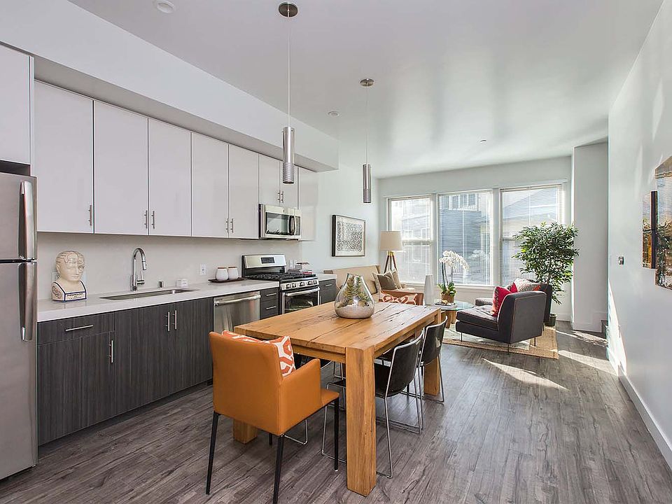 Spacious View Townhome with Deck: Move-In Bonus. The Point is, well, pretty much on point. Don't miss out on your opportunity to be the one of the first to live in this brand-new community conveniently located within the historic small "downtown" of Point Richmond. This large open-concept two-level 2 bedroom plus bonus room, 2 bathroom townhome features a bonus room great for use as a guest room, den, or office. The home is well lit and has beautiful modern dark gray wood-patterned luxury vinyl tile (LVT) floors; high ceilings; quadruple-pane windows; forced air conditioning and heating; a large deck with views of Point Richmond; and a full-size washer and gas dryer in the unit. The modern open kitchen has a Caesarstone quartz countertop and backsplash and stainless steel GE appliances including a gas range. The large bathroom has high-end finishes and a tub. The apartment is uber-efficient with a Navien tankless gas hot water heater, LED lighting, and spray foam insulation for superior sound insulation and temperature regulation. Optional 1-car parking completes the home. With modern looks, designer finishes, great amenities, and organic touches, the Point is one of the most convenient buildings in the Bay Area. Life at newly-built the Point is care-free with all the latest technology; energy-efficient heating and power; plenty of light and space; and a focus on healthy, eco-friendly living right in Point Richmond, Richmond, California. Amenities include landscaped common areas, bike parking, and a rooftop deck with a fireplace and a view of the park, hills, and homes of Point Richmond. The Point is more than just a rental housing complex: it's a neighborhood, and any good neighborhood comes with lots of amenities for the locals including an upcoming coffee shop and brewery. One of the reasons the Point is so special is its location within the small "downtown" of Point Richmond. At the same time, it is just minutes from Berkeley, Larkspur, and downtown San Francisco. Point Richmond is a gem, enjoying a historic small-town feel with quaint coffee shops, beaches, shops, restaurants, and even an old-fashioned barber. UNIT FEATURES: * 2 bedrooms plus bonus room, 2 bathrooms * Open-concept living room with hardwood floors, soaring ceilings, window treatments * Kitchen features high-quality quartz countertops and backsplash; stainless steel GE appliances including gas range, dishwasher, and microwave; and solid plywood constructed cabinetry with soft-close hinges * Bonus room great for use as den, office, or guest room * Master bedroom features en-suite bathroom with dual vanities * Bathrooms with solid plywood constructed cabinetry; soft-close hinges; towel bar handles; glass shower enclosures; high-quality quartz countertop, backsplash, and tub and shower surround for modern luxury look and no cleaning of dirty grout * Luxury vinyl tile (LVT) flooring throughout living areas and bedroom * Washer and gas dryer in unit * Large deck * Forced-air conditioning and heating * Navien tankless gas hot water heater * 1-car parking available * Pets considered on an individual basis with $50 per month pet rent * Move-in bonus: sign 12-month lease by December 15th for 2 months' free rent! (The price listed is the average rent over a 12 month period; 60 days will be $0 and the remaining monthly rent will be $4,200.) BUILDING FEATURES: * Landscaped common areas * Roof deck with fireplace * Parking and pedestrian entrances closed at night for controlled access for residents only * Bike parking_