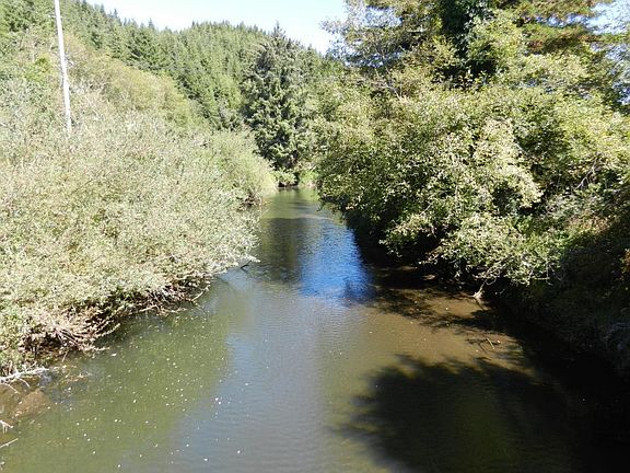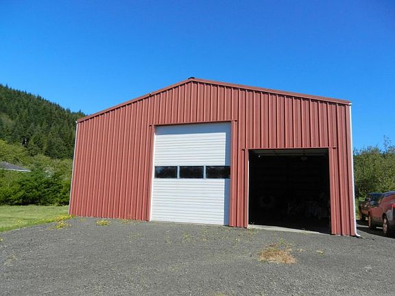 A fisherman's delight, Drift Creek front home built in 2011, 2 bed, 2 bath, plus a den. Shop building is 2,400 sq.ft, high doors for motor home, plus a single car garage on .78 acre ml.