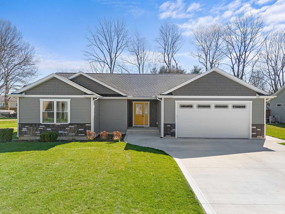 Open house cancelled due to an accepted offer. Ready for an AFFORDABLE and NEWER HOME that won’t break your bank? Throw back to 2021 because you can have this home with a 3.5% interest rate! You read that right. Assumable mortgage opportunity makes this the most affordable option imaginable. Home is only 4 years old and contains 1736 sq ft. Ranch style with 3 bed/2 baths and features vaulted ceilings, luxury vinyl plank flooring, and open concept living. The kitchen is upgraded with granite countertops, an oversized island, and gorgeous ONE year old Samsung Bespoke appliances. The chef of the home will appreciate that the oven contains an air fryer and the microwave is convection! There is a lot to love about the home: primary bedroom en-suite, dedicated laundry room, two car attached garage and additional storage shed outside for all your extras. But you will never run out of storage room here because the crawl space is concrete, insulated, and lit for ease of access and use! Lawn and landscaping have been treated 3x per year!. Also, there is an extra 100 amp line running to the back of the property for a potential future building.