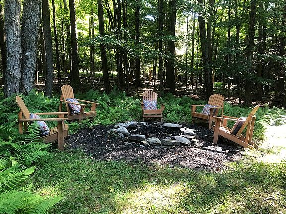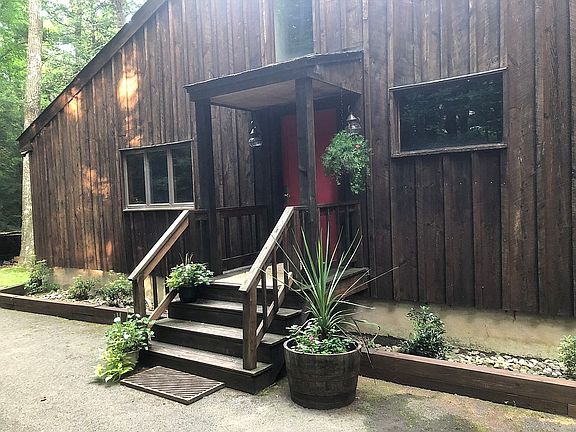 This private Mountain contemporary is surrounded by lush green trees while being walking distance to Lake Wallenpaupack! Your very own dock slip available through the highly desirable Laurel Lane HOA! The cathedral ceilings and open floor plan allow for natural light to fill the home. Enjoy the warm summer nights sitting by the fire pit on your just over one acre lot, and in the winters cozy up by the large field stone fireplace! This house is perfect for entertaining, with a bar right between the kitchen and living room, plus a full basement that is just waiting to be finished! Working remotely? Turn one of the 4 bedrooms into a home office so you can enjoy the peaceful lake once you're finished with a long day of work. Brand new furnace being installed!