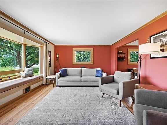 Unique well maintained home has fabulous character and appeal. Colorful breezeway welcomes you into this wonderful home. Hardwood floors are throughout the Living Room, Dining Room, Halls and all Bedrooms.  New Kitchen cabinets, quartz countertop, backsplash and flooring brighten the Kitchen. Stainless appliances complete the kitchen. The Living Room bay window has a cozy built-in seating area. Matching stained glass windows are in the Living Room and Dining Room. The third bedroom is large enough for a home office and bedroom (21x14). The laundry/storage room is plumbed for a possible future bathroom. Spacious basement has many built-in shelves and great for a workshop, play area or future finished Game Room. Fabulous four season sunroom has a free standing gas heater. Step outside to the paver patio, large level fence enclosed backyard and beautiful gardens with a shed. New epoxy garage flr. Walking distance to restaurants, Moon High/Middle Schools. Conv. to airport and I-376.