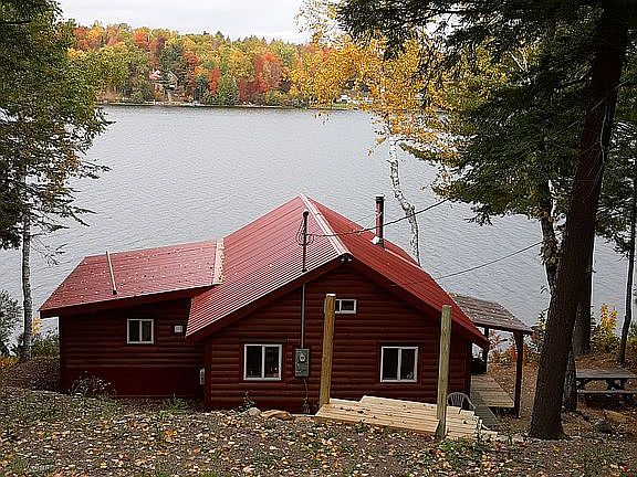 Recently renovated cottage with new bedroom and 3/4 bath addition, new well and septic. Cedar log siding. New interior with t/g cedar, loft area, new windows and doors, wiring, insulation, jotul woodstove, metal roof ect. Lot is just under an acre with 111' of waterfront. Gorgeous sunsets. Comes with all appliances including new stack washer and dryer, queen size bed, sleeper sofa, new dining table and chairs, large smart TV and more. Wifi installed.