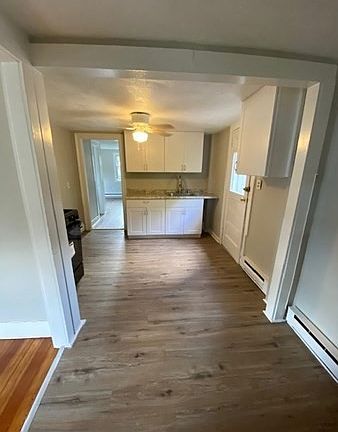 Available Now, newly renovated, one bedroom apartment in great location..walk to the lake ,downtown Wakefield and the train! This second floor apartment features living room with decorative fireplace, hardwood floors and a closet, eat in kitchen with wood-look vinyl flooring, gas cooking and exterior access to private deck overlooking the backyard. The bathroom has an enclosed shower stall, newer fixtures and laminate flooring and the bedroom is big enough for a queen bed with a closet. Newer windows and parking for two cars. Tenant pays heat and electricity. NO PETS, NO SMOKING. Landlord requests excellent credit and income equal to three times the rent monthly.