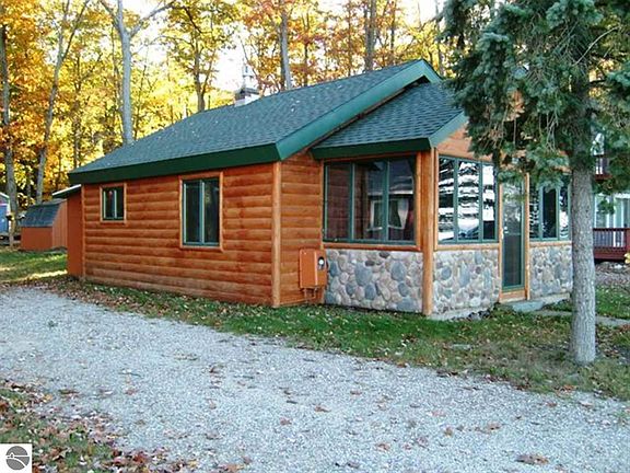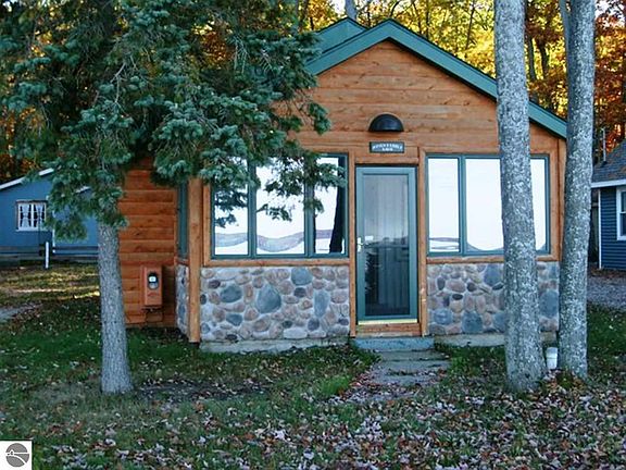 Very Charming Higgins Lake Cottage. Impressive views both inside & out, you will enjoy the rustic interior that has open log rafters, Electric baseboard heat, Andersen Windows, Newer Roof with 6" foam insulation ( according to previous records), freestanding Gas fireplace. Excellent Investment and or Recreational getaway !! Sold in 2004 $ 282,000 ( tax records) before more improvements were completed. Yr built is estimated, Sq Ft includes finished & heated 112 sq ft porch. Sq ft does not include 8' x 8' back addition which has Laundry hook-ups, Hotwater heater & Electrical Panel. Sale is subject to bankruptcy court approval.