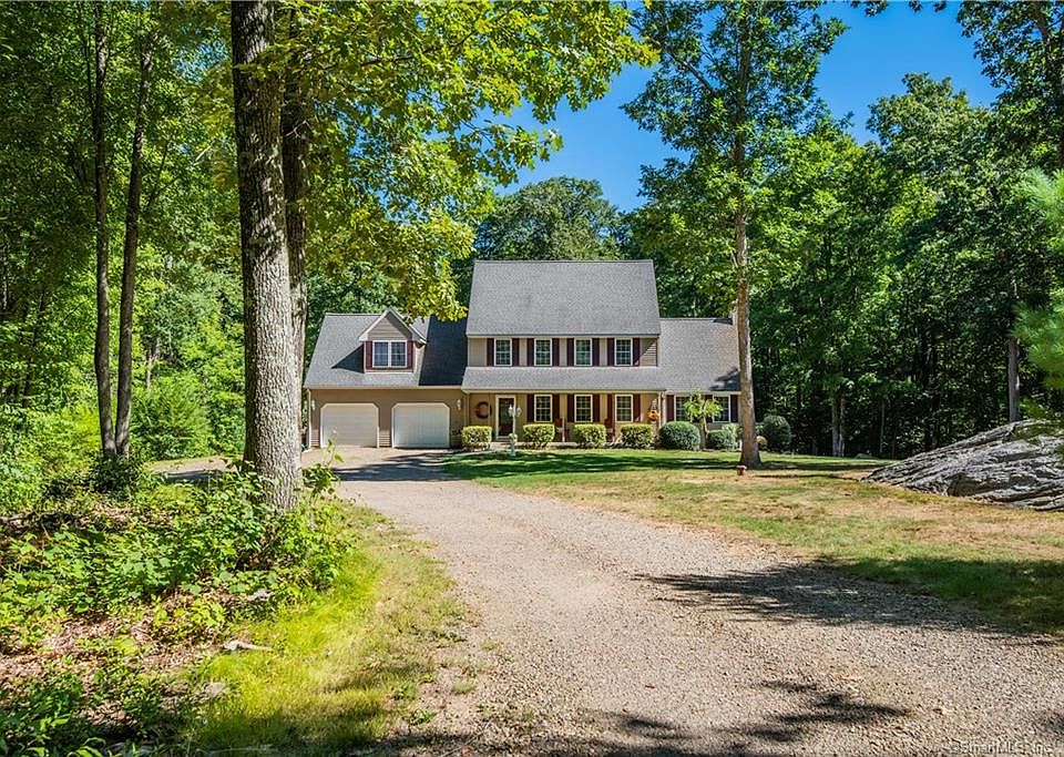 Absolutely stunning colonial with a covered front porch set on a private 2.46-acre lot in the tranquil northeast corner of CT. This property abuts Joshua Trust with walking trails and peace of mind not having to worry about future building behind you. From the moment you walk in the front door you will see how lovingly this home has been maintained and the warmth it exudes. An oversized dining room greets you as you walk in and is ready to host dinner parties and upcoming holidays, the kitchen is the hub of the home with a large, beautiful granite breakfast bar, new SS appliances, a pantry and tile flooring. The gathering room with pellet stove is the perfect place to settle in for game night or to watch a movie. A half bath with laundry is conveniently located right off the kitchen as you walk out to the garage and completes the first floor. Upstairs is a spa-like primary bedroom with huge walk-in closet and ensuite bath. Two additional generous sized bedrooms and a full bath complete the second floor. The finished lower lever has an additional family room, a guest bedroom or home office and full bath offering a wonderful private space for teens or guests. A deck off the kitchen offers outdoor entertaining options and a peaceful place to enjoy morning coffee or late afternoon cocktails. This home is simply gorgeous and will not disappoint Showings start Wednesday, September 7th-book your appointment today