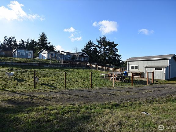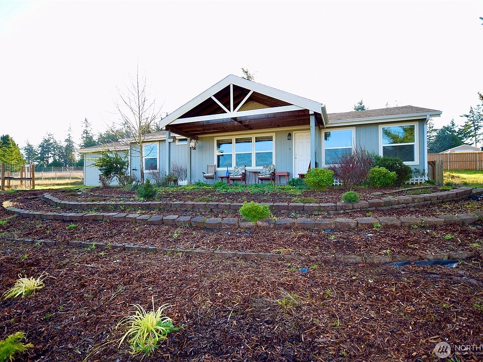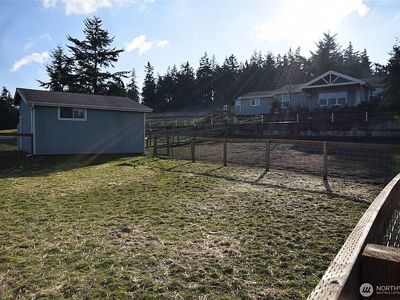 Beautiful & bright home with extensive upgrades & vaulted ceiling. Spacious, open concept 2 bd, 2 bAa home. Kitchen has large breakfast bar & walk-in pantry. Ex space for office/den. Desirable layout has split floor plan with primary adjoining bath & walk0in closet. Guest bedroom & bath. Sit on the large, covered front porch & enjoy the view of the valley below, amazing sunsets & wildlife. Separate studio/shop is insulated with power. The fully fenced property includes barn/stable for animals, pasture, chicken coop & run. Quiet country living in friendly neighborhood, close to town & Dungeness Wildlife Refuge with scenic trails & beach access.