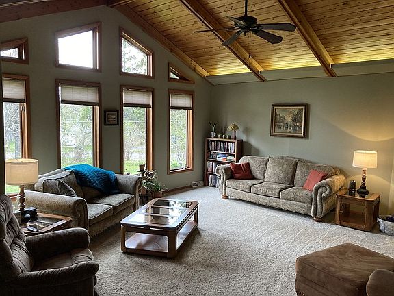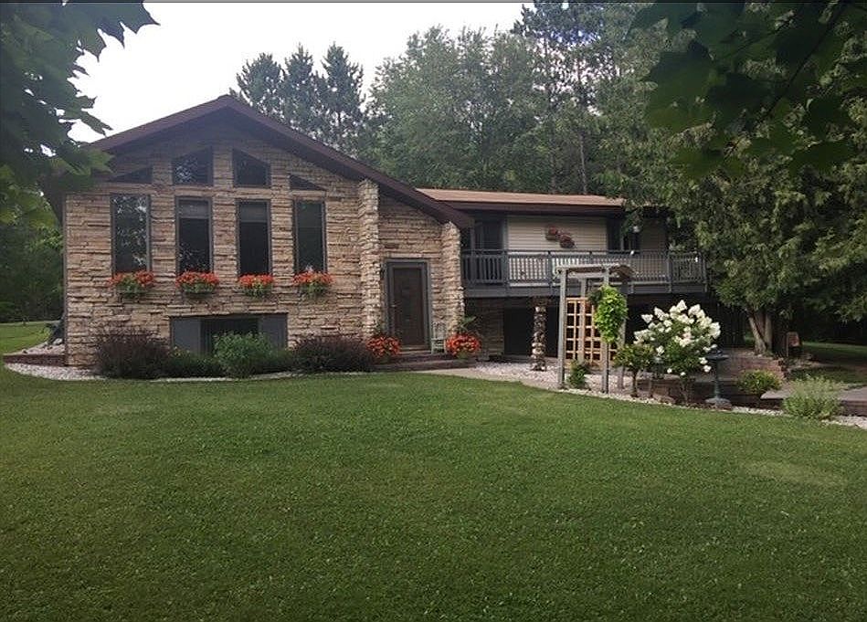 Home Sweet Home!! Looking for country living and right across from Sunset Lake? This well-maintained move-in-ready raised ranch home could be the one. Home has 3-4 bedrooms and 2 baths with an attached garage. Beautiful landscaping with perennials, lilac bushes and garden area - which has asparagus, garlic, horseradish, rhubarb, grape vines, blueberry bushes and apple trees. There is a potting shed/chicken coop (or maybe a playhouse) building as well. This is just the outside! Let's go inside - front entrance has a short, newly-tiled staircase to go up to the living room with cathedral ceilings, dining area and kitchen - all open concept. Kitchen has a bar area for extra seating next to the large, dining room with new laminate floor. Home is main floor living - three bedrooms, one bath and laundry area are all located on main floor. Master bedroom has lots of storage and there is a "sewing/craft room" right next to it. In the lower level, there is a rec/family room, another bedroom and newly-remodeled full bath. Perfect home for that growing family. Property is located right across the street from Sunset Lake and not far from the beach and boat landing area. Home has a front deck that is 6 x 24 and a nice back deck that is 12 x 16 - enjoy the sounds of nature sitting on both of these areas and breathe in the fresh country air. This home is a must see - but by appointment only! Call today to schedule!