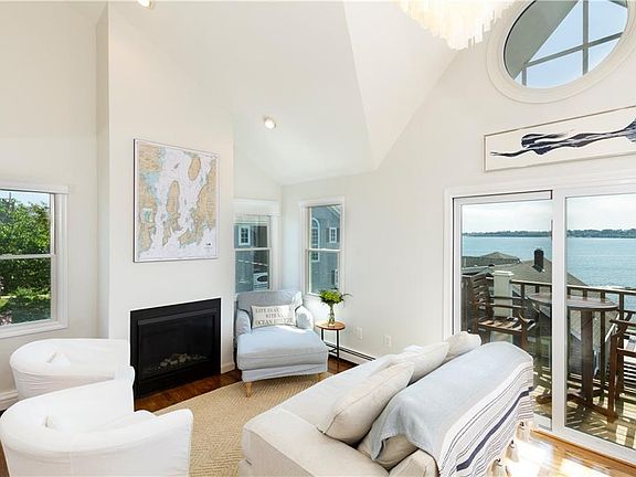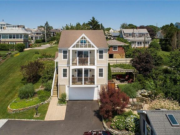 EASTON'S POINT - Enjoy spectacular ocean views from every level of this sunny beach house! This bright and airy contemporary has undergone extensive renovations in the last two years which include an updated kitchen with new stove, new dishwasher, new microwave, new quartz countertops and island perfect for entertaining, two new baths, new split HVAC system throughout, new electrical, new windows, updated fireplace, new patio pavers and new roof. 4 bedrooms, 3 full baths, a 2-car garage, 2 secluded outdoor patios surrounded by lush plantings, outdoor shower, and deeded ocean access. The ideal summer or year-round home by the sea. A beautiful seaside stroll to Easton's Beach, Cliff Walk & dining. No flood insurance required!