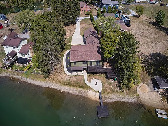 Built in 2020 w/Addition Added in 2023. Beautiful/Tranquil Setting on a Spring Fed Private Lake just off the Connoquenessing Creek. Located less than 10 Minutes from Zelienople & Routes 19/79. Open Floor Plan w/Creative use of Materials for a Rustic yet Modern look! The Kitchen Hosts: Open Shelving, Trendy Black Countertops & SS Appliances. Lux Vinyl Plank Flooring thruout Main Living Area. Living Room/Dining Room Combo Features a Large Picture Window to Enjoy the View, Built-in Shelving, Mounted TV, & Propane Gas Fireplace. Access the 2 Tier Deck here & Enjoy the View! Spacious Owners Suite with His & Hers Closets, Private Bath w/Double Bowl Sinks, & Glass Slider/Access to the Decks. BRs 2 & 3 w/Full Bath. Laundry/Half Bath Combo Room. New Addition Includes: 4th/Guest BR/Sitting Room & 3rd Full Bath, Office/Study Nook, & 2 Car Attached Garage. W/O Basement w/Access from the Outside - Ideal for Storage or Addt'l Living Space. Shed for Equipment Storage. Firepit & Private Dock Included!