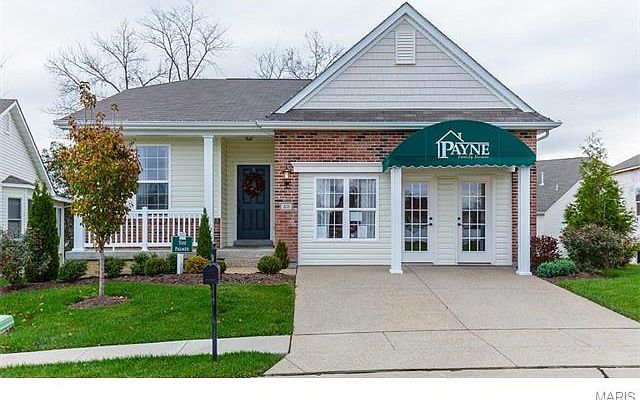 FREE STANDING, carefree living, VILLA DISPLAY home by Payne Family Homes! This 3 bedroom, 3 bath, 1,605 square foot ranch has brick, low maintenance siding, 2 car garage, deck, full sod, professional landscape, exposed aggregate drive-sidewalk, an irrigation system and backs to trees. Features include 9 foot ceilings, a Flex Room, transom windows, solid surface countertop on the Kitchen island, 42 inch cabinets with crown molding, wrought iron balusters at open stairs to lower level, stainless steel appliances, hardwood flooring in the Entry-Extended Entry-Café-Kitchen-Great Room-Laundry Room-Mud Room, double bowl vanity in Master Bath, raised height vanities, oil rubbed bronze lever door hardware, custom wall color throughout, 12 x 14 deck, 9 foot foundation pour and more. The finished lower level offers a Family-Rec Room, full bath, bedroom and walks out to an 11 x 13 patio. There is a total 2,416 sq ft of finished living space. A low monthly fee covers lawn, landscape, irrigation, exterior maintenance (per Indentures) and some insurance. The community is nestled in a quiet setting yet is near the restaurants and shopping on Wentzville Parkway. Owners have access to a community pool (annual fee) and are near the Golf Club of Wentzvilles 18 hole Golf Course. MOVE IN READY!