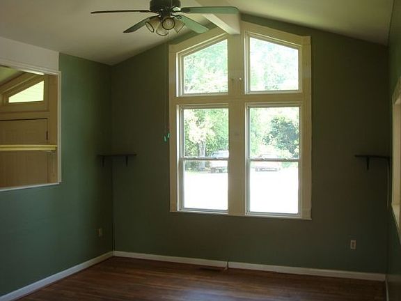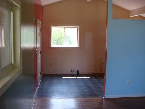 Exterior Features: Beige siding house with blue shutters and white trim. Large front yard, and large fenced in back yard. Windows are metal framed and all intact. Roof looks good, no signs of leaking. Foundation looks good, no signs of shifting. Landscaping in front and rear. Sizable deck on the back side of the house. There are two storage sheds. One connected to the carport and one independent from the house. Interior Features: Living room: hardwood floors, multiple colored painted walls (predominately olive green), vaulted ceilings, lighted fan, four large windows looking out the front of the house. Kitchen: grey linoleum floors, red and white painted walls, vaulted ceilings, wooden cabinets, dark grey countertops, no appliances present. Master: tan carpeting, white painted walls, ceiling fan, two large windows facing the side and rear of house, large closets. Bedroom 1: tan carpeting, white painted walls, ceiling fan, two windows looking out the side and front of house, small closet. Bathroom: grey tile print linoleum, white painted and tile walls, cast iron tub, toilet, and sink. Carpeting in both of the bedrooms are worn and discolored and should be replaced. Cast iron tub has rusted through the grout in the tile. Copper supply lines and pvc dwv waste lines. 30g electric water heater. Electric looks good (fuse box outside), gas heat-ac unit outside appears to be functional.