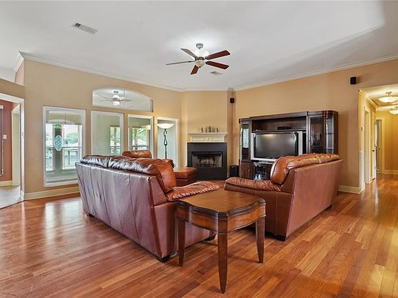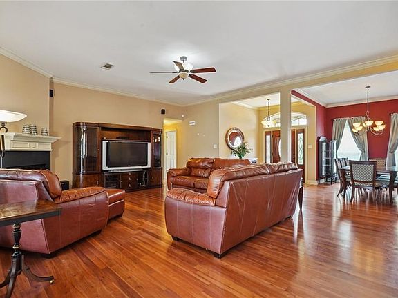 Always Dreamed Of Living Life On the Water? This gorgeous, lavishly landscaped home is just minutes to the lake!!! Open flr pln w/high ceilings, crown molding & surround sound speakers. Kitchen has 42 cabinets w/pull outs, center island & granite. Lg primary w/step ceiling, corner tub, sep shower & 2 closets. Covered dock & pergola on paver patio. New in last 8 months...roof, gutters, a/c condensor/evap coil, wd fence, dock w/wrapped pilings. Assumable max flood policy only $1563 a year.