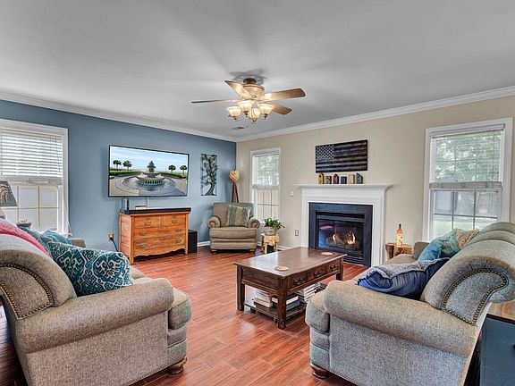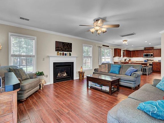 A welcoming front porch & two story foyer greats you to this well loved home! Separate dining room to the left upon entering could also be a great office or playroom. Continue to the large family room that has a natural gas log fireplace & open to the kitchen. Granite countertops, stainless steel appliances, under cabinet lighting, & large island showcase the kitchen. From the eat in kitchen space, head out to the patio & fully fenced in large backyard with a shed. Fully tiled floor with a wood grain look, crown molding, half bath, laundry room, & direct access to the two car garage complete the 1st floor. Upstairs to the bedrooms & large primary suite with double door entrance. Primary bathroom has dual sink vanity, tile floor, walk in closet, separate tub & stand in shower.Access to the Summerhaven neighborhood pool, & located in Dorchester District II schools with easy access to major roadways & historic downtown Summerville!