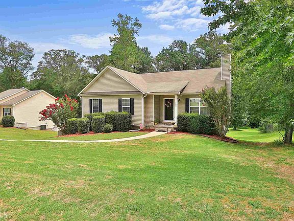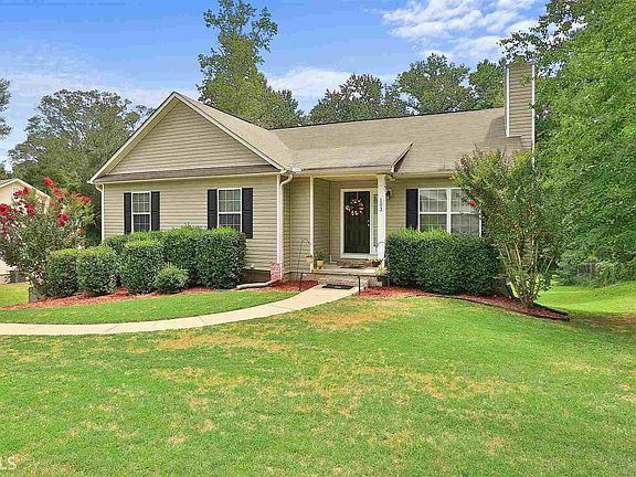 Golf cart access to downtown Senoia from this cozy home! 3 bedrooms & 2 baths on the main with a large family room w/vaulted ceiling and cozy stone fireplace. Eat in area off kitchen that has a full complement of appliances to include the refrigerator & dark solid wood cabinetry. Beautiful brand new 5 inch wood look laminate in family room, dining, kitchen and hallway. Large secondary bdrms with large closets. The master bedroom has trey ceiling, large walk-in closet and master bath w/double sink vanity, separate shower & a second closet. Wood stairs w/carpet runner lead to the finished basement w/hdwd floors, an office/den and large rec room with a nicely finished 1/2 bath. 2 car garage with huge storage/workshop area. Large yard goes back to the creek.