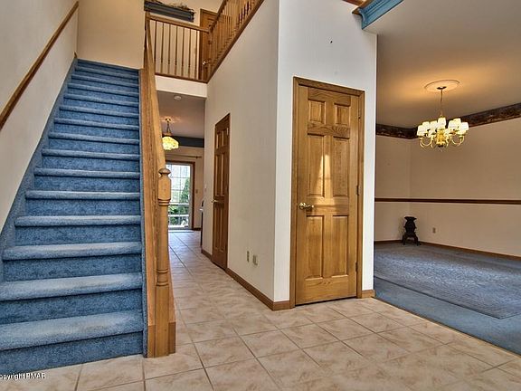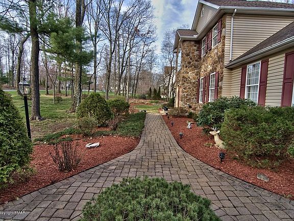 PRIDE OF OWNERSHIP! This custom 4BD/2.5BTH Colonial with stone facade is spacious & inviting with a paved drive & 2 car garage, is professionally landscaped and sits on 1.02 park-like wooded acres in the heart of Saylorsburg! The interior boasts an open floorplan, 9' & cathedral ceilings, electric lift chandelier, hardwood 6 panel doors & molding, lg rooms and plenty of closets throughout. Enjoy a kitchen with solid oak cabinetry, ample counter space & a breakfast bar; a propane fireplace with s tone surround in the family room; formal dining room; & a lovely Master with private bath & jetted tub! The full, dry basement, walk-up attic and additional garage attic is ideal for expansion & storage. The back deck and large yard are perfect for fun and entertaining. Security system, central A/C and vacuum too! PV Schools, No Dues--No Development! 1 Year AHS Home Warranty Incl. Minutes to major roads, local amenities & attractions! SEE OUR VIRTUAL TOUR! Don't Delay--Call Today!