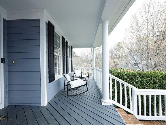 A welcoming front porch invites you to this timeless traditional Meadowmont home situated on a cul-de-sac street conveniently nestled next to a pond and trail buffer. Gorgeous oversized first floor primary suite. View of natural space from screened-in porch. The property is highlighted with stunning Brazilian cherry hardwoods, crown molding and attention to detail throughout an open floor plan. Maple cabinetry in the chef’s kitchen adjoins the dining room big enough to fit friends and all. Spectacular home office ready for your library of books. Spacious secondary bedrooms on the second floor with a full suite on the third level ready for guests or au pair. Finished basement with a wet bar, full bath and abundant storage. Ready for entertaining, working out and enjoying the patio area.