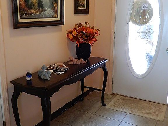 Upscale with decorator touches. Trey Ceilings with fans in the Great Room and Master Bedroom. Tiled flooring in Kitchen and Dining Rooms along with tiled countertops to match. Decorator tiled flooring in both bathrooms. Large Walk-in Closet in Master Bedroom along with ensuite full Bathroom. Extra Large Great Room with built-in bookshelves, room for double couch set plus reading area and entrance foyer. Full Laundry Room. Back Patio Deck, Partial Fencing on two sides of the yard. Oversized Garage with Vaulted Ceiling. The kitchen is equipped with pull-out drawers and newer appliances plus an over-the-stove microwave, an Electric Stove which is both standard and convection, a combo refrigerator with ice maker, and a new dishwasher.