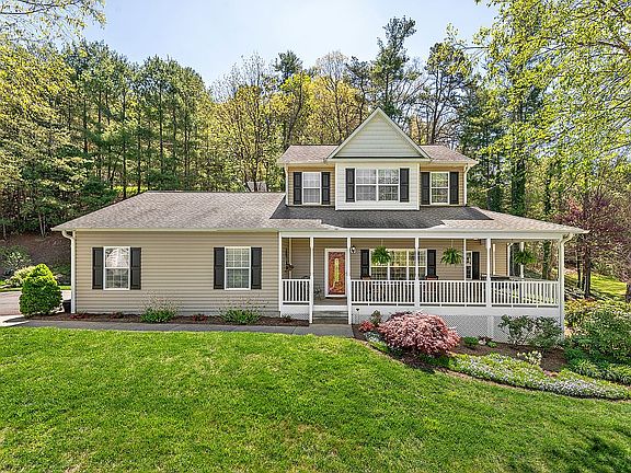Beautiful two story home just outside the city limits of Weaverville. City water and sewer are an added perk. Three bedrooms with the master on the main level. Two and one half baths. Ten foot ceilings throughout except cathedral ceilings in master bedroom and upstairs den. Living room has white birch ventless gas logs. Dining room is accented with arched walls that allow sight lines from kitchen to living room. Updated kitchen has unique granite counter tops, tiled backsplash, quality SS appliances including a Bosch dishwasher and a brand new LG refrigerator and LG microwave. New white oak hardwood floors in the living room and master BR. The rest of downstairs has had hardwood floors totally refinished. A stylish guest bath, laundry room and cozy screened-in porch off the kitchen complete the main level. Upstairs gives you another ample den space with a corner nook computer table. Two bedrooms and a newly remodeled bathroom with curved black and white tiles in the walk in shower. Back downstairs, walk onto a large wrap around front porch ideal for comfortable rockers and a porch swing. Long range views of the mountains provide gorgeous sunsets.The garage is oversized for two vehicles and all your toys, and includes its own separate storage room and brand new water heater.The yard is beautifully landscaped with azaleas, roses, and rhododendron. There is a beautiful stone retaining wall that spans the back yard, along with a black vinyl coated chain link dog lot and well built dog house for your furry best friend! This house has been meticulously cared for and is looking for a new owner that will do the same.