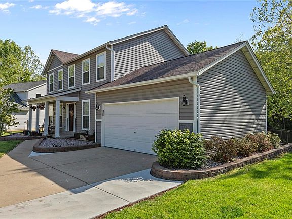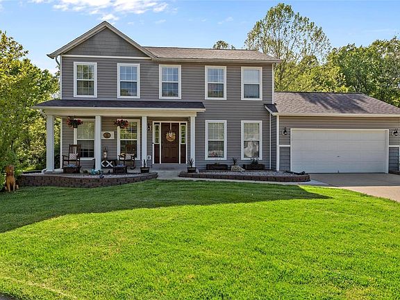 Stop the car! This is the home you have been waiting for. Tucked away at the end of a peaceful cul-de-sac, this 4 bed/2.5 bath 2-story rest upon a sprawling level lot backing to woods. The charming covered front porch welcomes you home! Engineered hardwood flooring throughout main level. Entry foyer w/shiplap wall, dining room w/new lighting & new rustic support beam open to the great room w/marble surround f/p, sunny bay window & shelving. Light & bright breakfast room & kitchen with 42 custom cabinetry, stoned backsplash, stainless appliances, pantry & bay-set atrium walk-out to the newly covered patio & gorgeous fenced backyard. Convenient main floor laundry room, breakfast nook and powder rm. Retire in style to the generously sized master bedroom suite w/WI closet & private full bath w/vaulted ceiling, double vanity, soaking tub and walk-in shower. 3 addl bedrooms & updated hall bath. Finished LL w/rec/family room, tv & bonus rm. Zoned HVAC system w/dual thermostats! So much more!