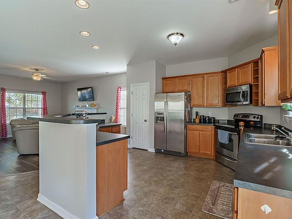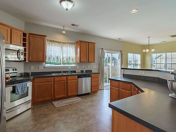 - RoomKitchenFeatures: Kitchen Island, Pantry, Recessed Lighting, Eat-in Kitchen, Counter Tops-Formica, Cabinets-Natural, Floors-Vinyl, Bar
