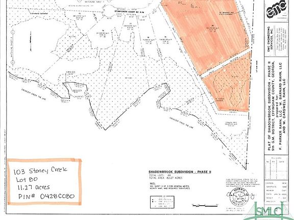 Fantastic Opportunity to build you dream home on over 110 acres that borders Ebenezer Creek. This lot located on a cul-de-sac in the back of the Shadowbrook neighborhood. It is not part of the neighborhood but has an easement to allow access. The lot has over 11 acres. Included in the sale is PIN # 04280014 which has 100.08 acres. The 100 acre tract is a wooded paradise with wild turkey, deer and duck. This property has endless possibilities.
