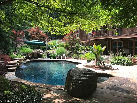 This home has so many extra features: Custom pool with hot tub, new pool heater, professionally landscaped and paver walks, new 50 year warranty roof, new skylights. Stainless steel appliances including fridge with coffeemaker, wine fridge, granite tops, Travertine floors in kitchen, pantry, laundry, foyer and half bath. Pendant lighting in kitchen, two fireplaces, new Trex deck, 40 zone Burg panel, latest TVI HD cameras and recorder (owner's business). Notification of cars entering property, Ring unit at street. MBR has two vanities, 2 walk-in closets, jetted tub and shower. New vanity lighting. Oversized 2 car garage with 9000 lb lift, heated and AC. 5 zones heat. 2 zones AC. Well equipped gym, sprinklers and 12V LED landscape lighting. 5 minutes to NJ Transit trains and close to everything.