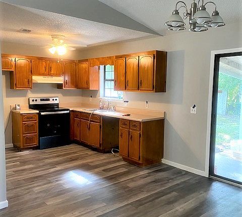This home has been revived! The new exterior paint beckons you to take a second look along with the 2 beautiful Crepe Myrtles which give this home a beautiful curb appeal Whether you want to put your rockers out front and enjoy mother nature at her best or take them to the back yard which boasts a large, covered patio in the fully fenced back yard. This 3 bedroom, 2 bath home offers new Woodrift grey vinyl planks throughout the entire home (NO CARPET), new paint, new ceiling fans, new vanities in the bathrooms, new kitchen appliances, new water heater. This home is an empty slate waiting for your personal touches. The garage has been converted to an additional 300 square feet of living space to incorporate a large laundry area.