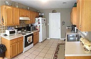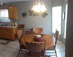 Three bedrooms, two baths, living room with vaulted ceiling and patio doors to a large fenced back yard. Kitchen has abundance of cabinets and joins the breakfast area that is accented with a bay window. Laundry room is conveniently located between kitchen and garage.