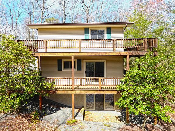 Well maintained, move-in ready mountain chalet with lake rights to Lake Wallenpaupack! Two tiers of wrap around decking, hardwood flooring, 2 fireplaces, 2 garages, a walkout finished lower level, 3 bedrooms, and 3 baths - one on each floor! Low community dues and access to the amenities of the nearby prestigious Tanglwood Lakes community - 5 acre sandy beach area, horseshoes, volleyball, and large gazebo for cooking and hanging out. Quick access to Hawley for shopping & dining, Interstate 84, and Lake Wallenpaupack!