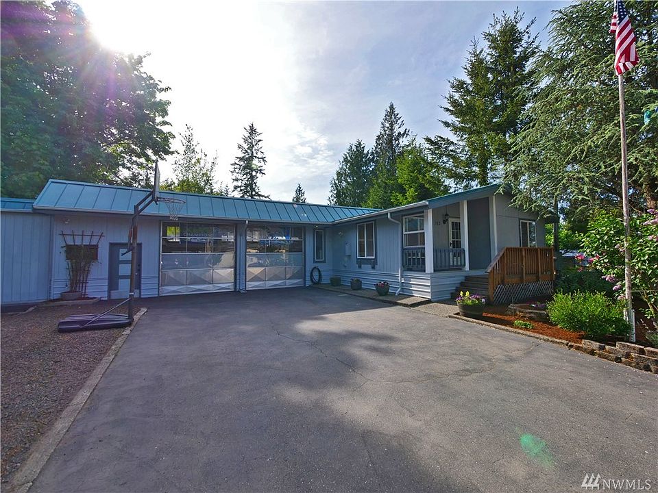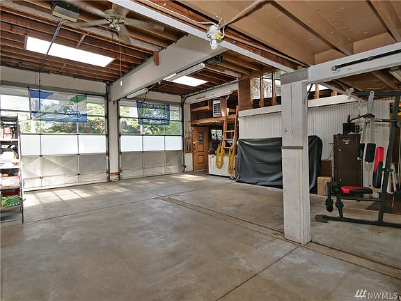 Unbelievable VALUE in this car-lover's paradise. This cute & clean 2bd home plus "den" is 1104sf connected to 1000sf of garage & shop! W/ lots of windows & heat, seller used garage as a bonus room! You'll be amazed how this home just keeps going & going. Finished office not incl in the 1104sf. SOO much room for storage & projects. Outdoors features covered porch, firepit, deck. Laminate floors, NEW carpet, new paint, turn key! Walking dist from Kitsap Lake. Min from town, WIN!