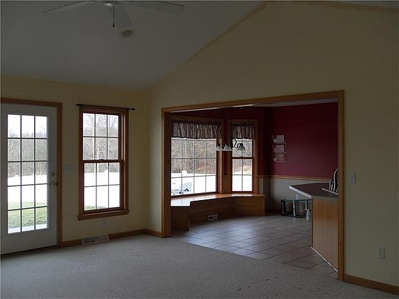 A rare find....a four bedroom ranch with a huge finished basement on a beautiful 1.75 acre lot with a spectacular view in Slippery Rock Township! Part of the private backyard is fenced and has a stamped concrete patio and fire pit. You can see for miles and miles from the back yard. The master suite has custom built closets, vaulted ceilings and a master bath complete with a jet tub. The kitchen has a bay window with a window seat, oak cabinets and peninsula. Oak trim thru out. First floor laundry.