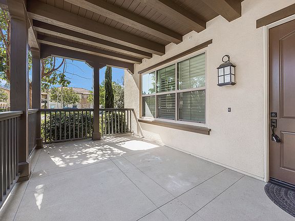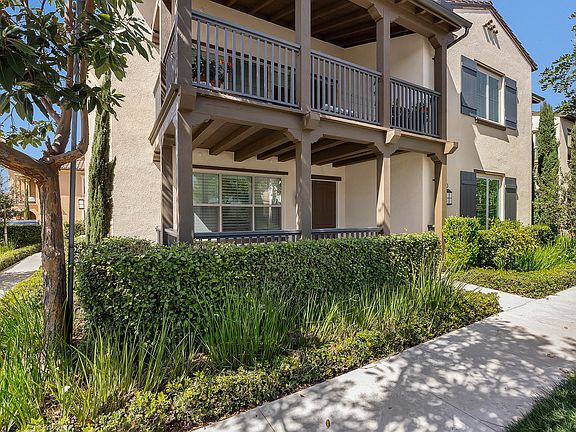 Rarely available, ADA-friendly single-level end-unit condo with no steps in highly sought-after Eastwood Village! This light-filled home boasts high ceilings, newly installed luxury vinyl plank (LVP) flooring throughout, and an open-concept design. The spacious kitchen features white Thermofoil shaker cabinetry, quartz countertops, a breakfast counter, and stainless steel appliances, including a five-burner gas cooktop, oven, hood, dishwasher, and microwave. The great room is bright and airy, complete with recessed lighting, window blinds, shades, and a raised outlet for a wall-mounted TV. The primary suite offers plantation shutters, LVP flooring, a raised outlet for a mounted TV, and an en-suite bath with a dual vanity, tiled shower with a frameless glass enclosure, and a walk-in closet. The secondary bedroom includes plantation shutters, LVP flooring, and a sliding-door closet, while the secondary bath boasts a soaking tub, shower, and stylish tile plank flooring. Additional highlights include a tandem garage, tankless water heater, and a spacious covered front patio. Enjoy resort-style amenities, including pools, spa, fire pit, BBQ area, picnic spots, a playground, biking trails, and a clubhouse with banquet facilities. Located within walking distance to top-rated Irvine schools, shopping, parks, and the Jeffrey Open Space Trail. Buyers to verify all information, including ADA accessibility. Don't miss this incredible opportunity!