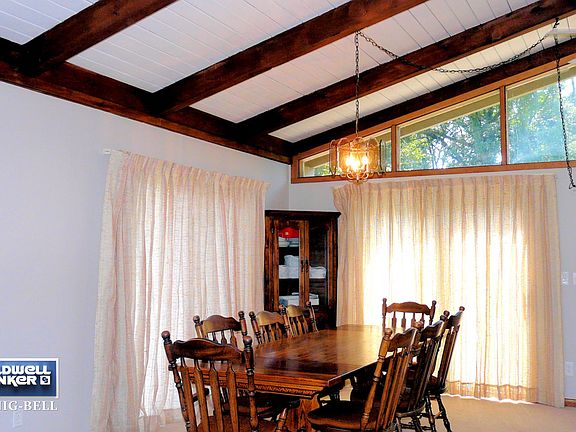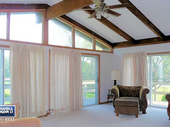 Great location near fishing pier and lake-access Green Area. All freshly updated and painted, ready to simply move in your stuff. Light and bright open concept for living, dining and kitchen with walls of windows and sliders to the big wrap-around deck with partial lake views. Loads of closets and storage spaces.New tile and fixtures in first-floor bath. Some newer carpeting. Full basement newly painted and ready for your ideas for more living space. Large circular drive freshly resealed with several pull-off areas for plenty of room for autos, boat, RV and guests. Oversized garage includes separate 24 x 6-foot storage room. Great lot backs up to wooded area.