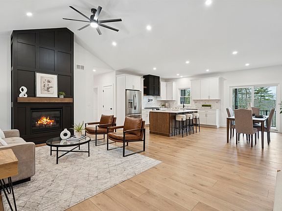 Prepare to be impressed by this custom-built home set on 5 acres with breathtaking views of Mount Monadnock. A peaceful babbling brook runs along the right side of the property, adding to the natural beauty. Thoughtfully designed with soaring spaces, luxury finishes, and a flexible layout, this property offers the perfect blend of comfort, style, and craftsmanship in quiet, low-tax Sharon, just minutes to Peterborough. The main level features cathedral ceilings, open living and dining areas, and a gas fireplace that adds warmth and ambiance. The gourmet kitchen is beautifully appointed with an expansive island, abundant cabinetry, premium appliances, and a layout ideal for cooking and entertaining. Sliding doors lead to a large covered deck spanning the back of the home, where you can enjoy year-round mountain views. The private vaulted-ceiling primary suite offers a huge walk-in closet and a spa-inspired bathroom with a double-sink vanity and stunning tile shower, while two additional bedrooms and a full bath provide comfort for family or guests. The fully finished walkout lower level features high ceilings, a full bath, wet bar, fourth bedroom, and walkout to a stamped concrete patio, perfect for guests, in-law potential, or an entertainment space. Additional features include central air and heat, dedicated mudroom, a large laundry room, a two-car garage, abundant storage, and high-speed internet. This exceptional property is a rare Monadnock Region opportunity.