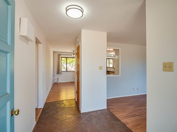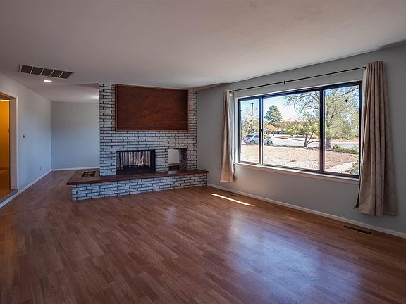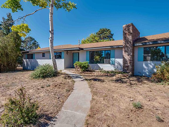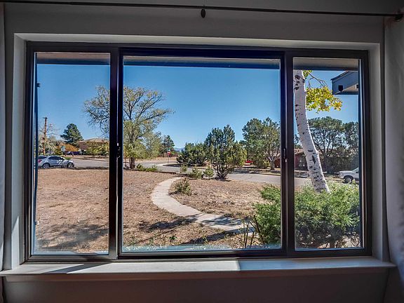 Welcoming single level home well located on an expansive corner lot. The attached two car garage is accessed at the side of the home creating a spacious and unobstructed front yard facing the Sangre Mountains providing pretty views especially from the front living spaces. The home opens to a charming bright living space complemented by a picture window and double-sided brick fireplace. An additional living space provides a cozy place to enjoy the fire and gaze outside. A powder bath just off the living area is perfect for guests. The bright kitchen provides tile flooring, ample cabinetry and counter space, a pass-through, and neat corner window overlooking the backyard. A breakfast bar, dining space with shelving, and desk area are complemented by nice windows and updated lighting fixtures. The primary bedroom provides a nice view out front and has a private entry to the main bath. The main bath provides ample counter space and tiled shower and flooring. Two guest bedrooms at the back of the home are conveniently connected by a Jack & Jill bath. An office with a view is just across the hall. Nice laminate flooring flows throughout the living spaces and bedrooms providing nice continuity. A laundry area is nicely located just inside the direct garage entry. The backyard provides a patio and several trees offering nice shade in the warmer months and plenty of space to enjoy the outdoors. Very desirable Barranca Mesa location, dont let this one pass you by!