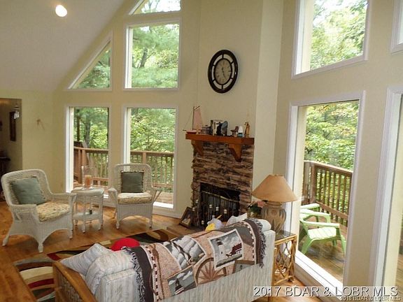 PRISTINE Lake Front Home in Linn Creek Cove. If you Love being Nestled in Nature, this is the Lake Front Home for you! Surround yourself with Trees and Nature. The walk to the dock is an adventure like walking along a State Park Trail but the outcome is worth it! Built in 1997, home features 4,000 SF of Living with a Beautiful Living Area with a wood burning fireplace and a wall of Soaring Windows overlooking the wooded setting. Includes 4 Bedrooms, 3 Full Baths, Large Open Great Room Area to accommodate your Family and Guests, plus a large Family Room on the lower level. Lake Front includes a 2-well dock nestled in the cove. Located in Three Rivers Subdivision with only 7 homes offering Central Sewer and Water.