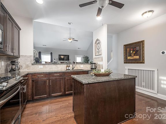 Wonderful home located in sidewalk lined neighborhood located close to schools, restaurants, shopping, Liberty Park in Downtown Mooresville.  Primary bedroom situated on main level with   three spacious secondary bedrooms up. Primary has wall lined with bookshelves that stay. The  loft is perfect for playroom or media area.  Kitchen has gas range and plenty of  granite counter space with an island. Sitting at the bar that overlooks kitchen perfect for family gatherings or homework.   Dining room currently being used for office in the front of the home.  Large laundry room connected to primary closet.  Screened porch allows for enjoyment of outdoors year round. A good book, dinner or a deck of cards outside you pick!    Storage shed outback will hold swim toys for the community pool or nearby Lake Norman.