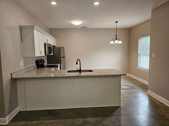 Welcome to this duplex located in the vibrant city of Hammond, LA. This property boasts two spacious bedrooms and two full bathrooms, providing ample space for comfortable living. The interior is beautifully designed with tall ceilings, enhancing the sense of openness and light. The duplex is equipped with ceiling fans for those warmer days, and for added convenience, there are washer/dryer connections available. The kitchen is a chef's dream, featuring granite countertops and stainless appliances, offering a sleek and modern aesthetic. The entire duplex is carpet-free, making cleaning a breeze. Faux wood blinds add a touch of elegance and privacy. Additionally, the duplex offers off-street parking, providing an extra layer of convenience for residents. Experience the perfect blend of style, comfort, and convenience in this Hammond duplex.