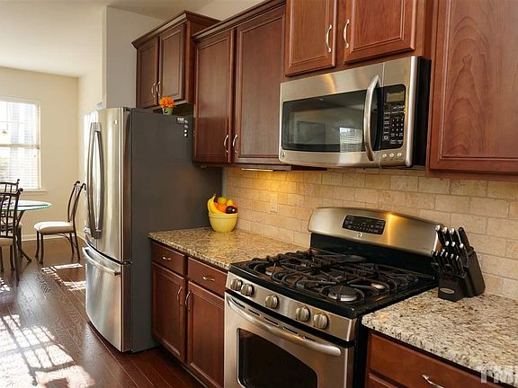 Spacious, open floorplan with large yard in popular Brier Creek neighborhood! Maintenance free homes attached only by storage rooms! This home is in excellent condition and features first floor hardwoods, gas fireplace, stainless appliances, granite countertops, walk-in pantry, and gas range. Master suite with trey ceiling, separate garden tub and shower, dual sinks, and huge walk-in closet. Extremely convenient location adjacent to Brier Creek and RTP with quick access to RDU, I-40 and I-540