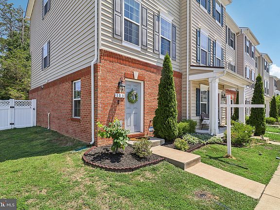 Welcome to 103 Tree Line Dr, a stunning 3-bedroom, 3-bathroom end townhome nestled in the desirable Rappahannock Landing community. This 2018-built home boasts a timeless exterior featuring a brick water table and vinyl siding, showcasing both durability and charm. Upon entering, you'll immediately notice the impeccable maintenance and modern design throughout. The lower level offers convenience with a spacious bedroom and a full bath, ideal for guests or as a private retreat. Step outside to discover a fully fenced rear yard enclosed by a 6-foot vinyl fence, providing a secure and private outdoor space. Additionally, a newer shed is included, offering extra storage for tools or outdoor gear. The heart of the home is the gourmet kitchen, complete with stainless steel appliances, granite countertops, recessed lighting, and elegant pendant lights. The open concept layout seamlessly connects the kitchen to the living and dining areas, creating a perfect space for entertaining or relaxing. Hardwood floors grace the first and second levels, adding warmth and sophistication, while plush carpeting enhances comfort in the upper level bedrooms. Each bedroom features a ceiling fan with light kits, ensuring comfort throughout all seasons. Located for convenience, this home offers easy access to shopping, downtown Fredericksburg, I-95, and Central Park, making it an ideal choice for those seeking both tranquility and accessibility.