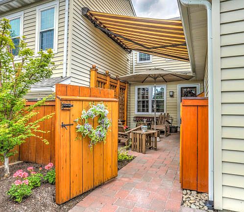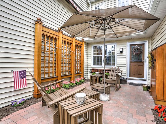 Very well maintained 3 bedroom townhome, impeccable condition. Updates include replacement windows, interior doors, upgraded flooring throughout, updated kitchen and baths, updated HVAC system and roof. Brick patio with wood pergola in rear, EP Henry patio with retractable awning in front. Beautiful gas fireplace with ceramic tile face. 1 car garage with storage system.