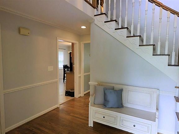 Updated home at the end of a cul-de-sac with a large fenced backyard! The rocking chair front porch overlooks the cul-de-sac location and gorgeous roses. Head inside, through the two story foyer with great beautiful hardwood floors and details molding, which continues throughout the home. To your right, you will find a spacious family room with great dentil molding, updated carpet, and a gas log fireplace. Continue through the large dining room and into the eat-in kitchen where you will find great cabinet and counter space, and a walk-in pantry! The large laundry/mud room is just around the corner, and the garage is just beyond that. That space features a workshop for the handy one in the family! Back through the foyer, and past the half bath with granite countertops, then head upstairs where you will find three bedrooms, including the master suite. The master bedroom is a great size, with a bay window, plus a walk-in closet, tile shower, and double sink with granite top. The other two bedrooms are also spacious, and their shared bathroom features dual vanities with granite tops! Head back downstairs and out to the huge deck. This overlooks your large private backyard with a swing, brick walkways and more!