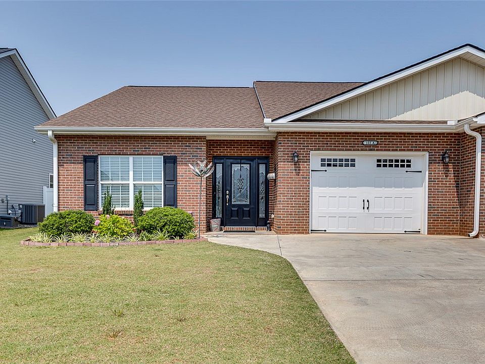 Located in a quiet neighborhood in the city limits of Easley, this all brick, one level townhome with attached garage welcomes you home! Upon entry, the neutral color scheme comforts you instantly. The open concept kitchen/living room is perfect for family gatherings. The kitchen includes all black appliances, granite counters, with sleek white cabinets for plenty of storage. The master bedroom features a double vanity, walk in shower with massive walk in closet. You'll enjoy a guest bedroom and a hall guest bathroom. There is a laundry room tucked away for convenience. Outside, there is a 16x10 covered patio for enjoying your evenings. Completely fenced back yard for your pets. This townhome is a must see and will not disappoint!