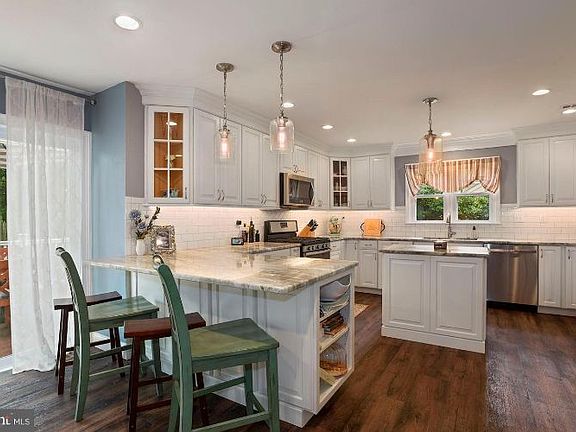 Welcome to this highly sought after neighborhood of Longwoods in Mount Laurel. Great Location, even better home! Completely redone from head to toe so all you have to do is move in and enjoy. Enter to find cathedral ceilings in the foyer, lots of natural light throughout and an open floor plan perfect for your every day and entertaining lifestyles. The spacious family room is currently being used as play room, around the corner you will find the living room which which opens too the eat-in, Chefs kitchen with granite counter tops, peninsula, island, beautiful 42" soft close white cabinetry, extra large and deep stainless steel sink, pantry and coffee bar. Wrapping around the corner is a lovely dining room that is currently set up as a bar and office. Upstairs you have four nice sized bedrooms including the master suite complete with a walk-in closet and spa like master bathroom. Downstairs you have a finished basement with lots of storage, entertaining space, office and laundry room. Outside is a large, trex deck and beautifully landscaped yard with a a full fence. This home will not last long, come see it today! New Carpets, Fresh Paint, New Slider Doors, Double Pane Double Hung Vynyl Windows, HVAC was replaced in 2018.