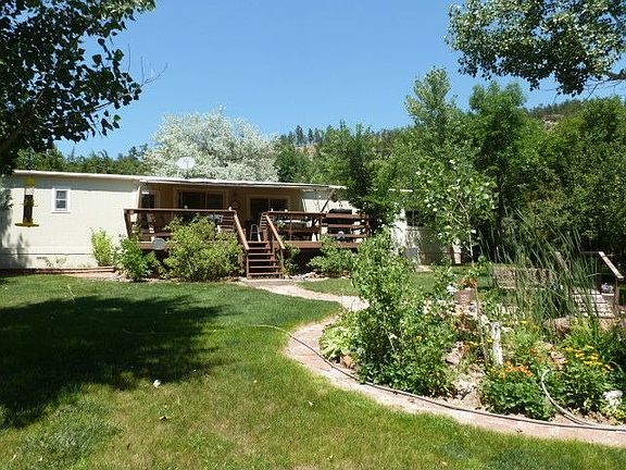 Two bedroom two bath home is located just at the edge of Hot Springs just off Hwy 385/18 with all the city amenities but feels like country. This home has a beautiful setting - surrounded by trees/shrubs with wonderful waterfall/pond feature in the front yard, several flowers gardens, sprinkler system, drip irrigation to trees, wonderful lawn, 2 storage sheds and a large deck with retractable awning to sit and enjoy it all. An asphalt paved driveway takes you to a two car garage that is attached to this home with a 10'x16' addition that serves as a den/TV room now but could have many uses to a new owner. Current owner has updated windows with vinyl thermo pane windows. New Lennox heat pump in 2012. Newer roof. Appliances stay with the property including the Culligan water softener. Two attached storage sheds provide plenty of area for lawn tractors, gardening tools, etc. This is a manufactured home with poured pillars under the main house and cement block under addition. Brokered And Advertised By: Heartland Real Estate Listing Agent: Cathy Mosset