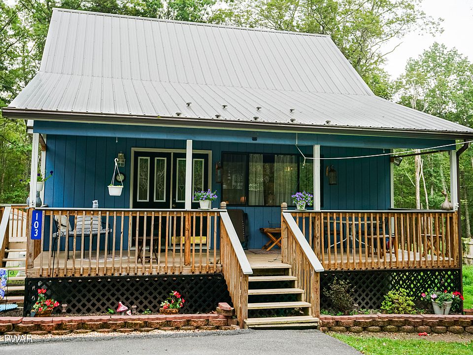 Full unfinished basementNew windowsNew metal roofInviting living spacesConvenient half bathCovered front porchPeaceful surroundings