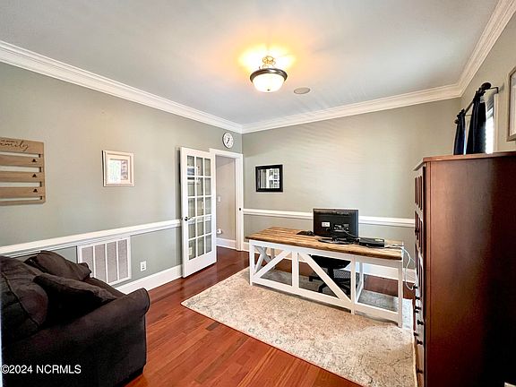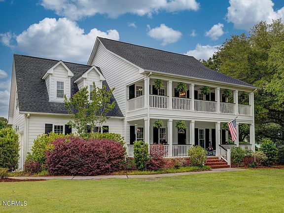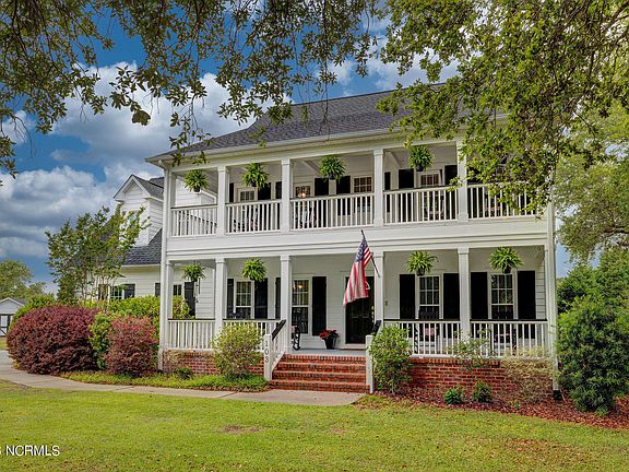 Welcome home to Pecan Grove Plantation, a gated coastal community located in the heart of Hampstead, NC. This gorgeous, southern farmhouse has double front covered porches, which are ideal for watching our famous Carolina sunsets. This home is also in close proximity to the first of 2 fishing docks within the community. This immaculate home has multiple options to organize your living space and entertain guests. Upon entry into the foyer, you will see a spacious office/den and a separate formal dining room with a coffered ceiling and chair rail, both with beautiful glass French doors. The formal dining room leads to a large kitchen with granite countertops, travertine backsplash and gorgeous cabinets. The kitchen nook has plenty of space for a full-size kitchen table or consider placing bar stools at the kitchen counter for more seating and entertainment options. The kitchen opens into a living room with a large and beautifully designed mantel with gas fireplace and tall windows providing excellent lighting. There is an additional sunroom/flex space located off the kitchen and living room that has endless potential while enjoying the views of the fully fenced back yard. Walk upstairs to find 4 bedrooms and 3 additional full bathrooms. The owner's suite with large ensuite bathroom, walk-in shower, jetted bathtub, walk-in closet and excellent natural light is welcoming and peaceful. An additional enclosed sunroom/flex space is situated beside the owner's suite with a portable air conditioning/heating unit. Enjoy the 2nd floor covered front porch with access from 2 bedrooms. Owners will find convenience in the laundry room and drop zone/mud room adjacent to the 2-car garage. Reserve a private showing today to experience all that Pecan Grove Plantation has to offer!