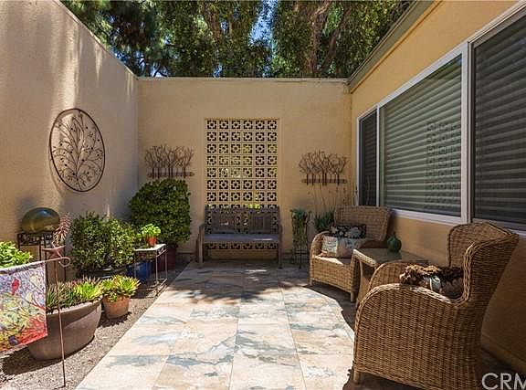 Gorgeous remodel in this rare maltese cross cordoba with an added hobby room, den or office that could be a third guest bedroom. Walk past the beautiful flowers outside and step through your double gated entry into your private ENCLOSED PATIO with room to plant and lounge. Once inside your are bathed in soft sunlight and greeted with an open floorplan. The kitchen is a chef's dream with stainless steel appliances, granite countertops, handsome back splash, white cabinetry with pull out shelving and soft close drawers, a double sink and center island. The bathrooms are sumptuous with granite counters and boast a remodeled shower with built in seating. There are ceilings fans and recessed lighting and a walk-in closet was added in the master bedroom. The large INTERIOR ATRIUM adds to the ambiance and is the perfect escape to relax in. Full size laundry inside is included. Newer a/c unit, double pane windows and a fully paid for SOLAR system all provide comfort and save you money. NO ONE ABOVE YOU OR BELOW YOU. Make this one of a kind home yours and start enjoying all the world class amenities that Laguna Woods Village has to offer.
